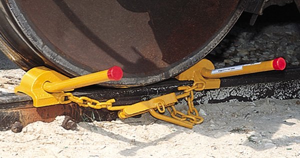 Double Railroad Wheel Chock w/ Tension Clamp & Padlock